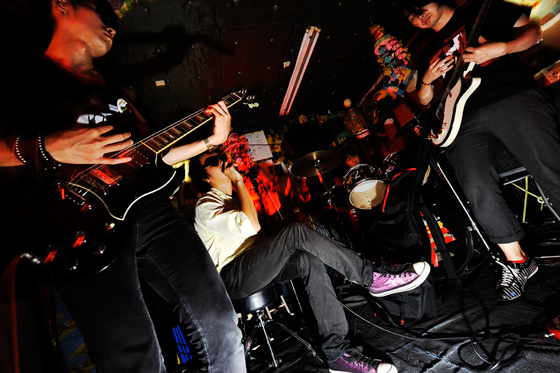 | *nakayoshi group* 10月1日と2日に出演 2004年結成。現在4人編成。 モラトリアム真っ只中の帰宅部の暇を持て余した高校生が屋上で 「やることないしバンドでもやらない?」と盛り上がりスタジオに入るも、 その一度以来一切活動をしない的なスタンスで現在まで活動中。 ローファイポップバンドなどと称されている。 最近ではイラストレーターとしても活躍するボーカルの後藤徹也が描いた バンドTシャツがアパレルブランド「galaxxxy」から発売され 何故か即売り切れるなどメンバー自身も首をひねるような現象が起きている。 http://www.nakayoshigroup.com nakayoshi groupにインタビューしてみました! |